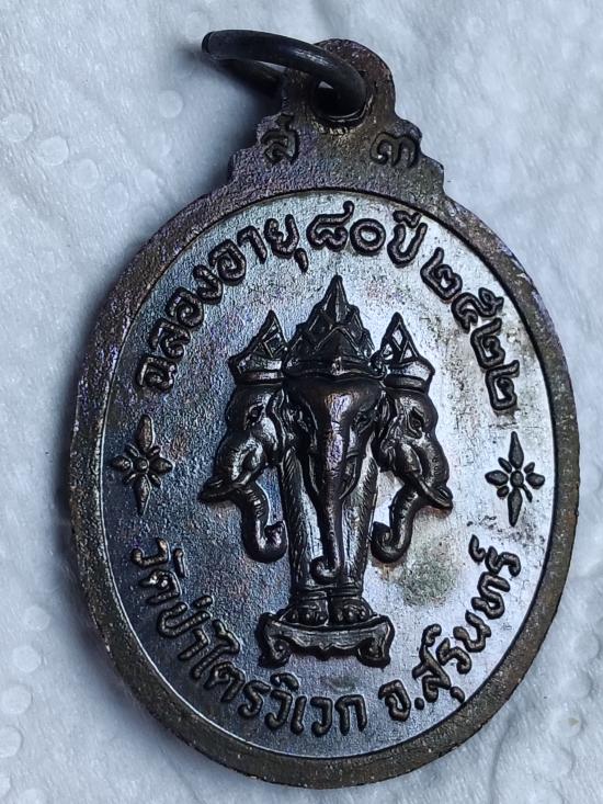 เหรียญหลวงปู่สาม อกิญจโน วัดป่าไตรวิเวก จังหวัดสุรินทร์ รุ่นฉลองอายุ80ปี ปี 2522 หลังช้างเอราวัณ เนื้อทองแดงรมดำ
