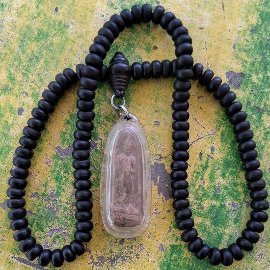 สร้อยปะคำกะลาตาเดียว ๑๐๘ เม็ด แถมพระกำแพงลีลาเม็ดขนุนไม่ทราบกรุ วัดใจทีเดียวแดง
