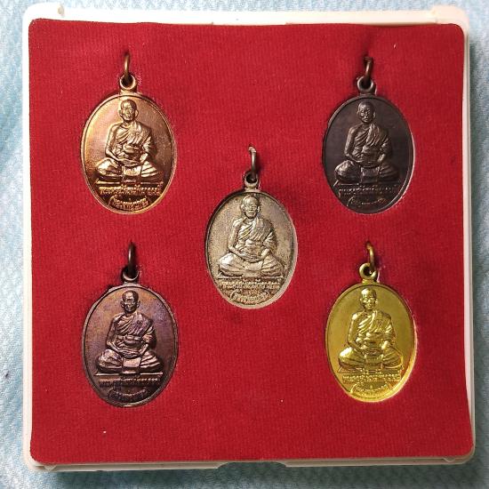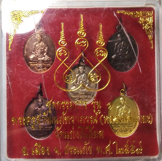 เหรียญรุ่น1ชุดกรรมการ ครบ5เหรียญ พร้อมกล่อง หลวงพ่อแกละ พระครูสุวัฒนภัทราภรณ์ วัดแก่งสีเสียด อ.เมืองฯ จ.สระแก้ว ปี พ.ศ. 2559 มีขาตั้งแบบกรอบรูปด้านหลังกล่อง