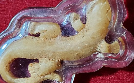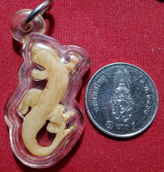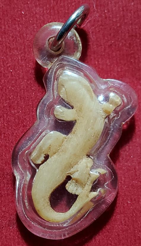 จิ้งจกเดี่ยว เขากวางแกะ หลวงพ่อหน่าย วัดบ้านแจ้ง อยุธยา จารมือ อะอิอะมะ ที่ใต้ท้อง เลี่ยมพลาสติก