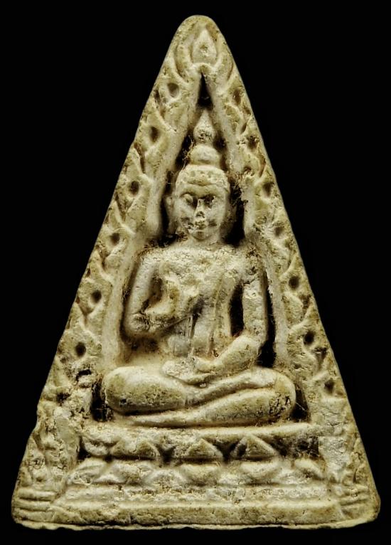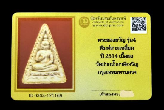พระของขวัญรุ่น 4 พิมพ์สามเหลี่ยม ปี 2514 เนื้อผง วัดปากน้ำ กทม.(พร้อมบัตรรับรอง)