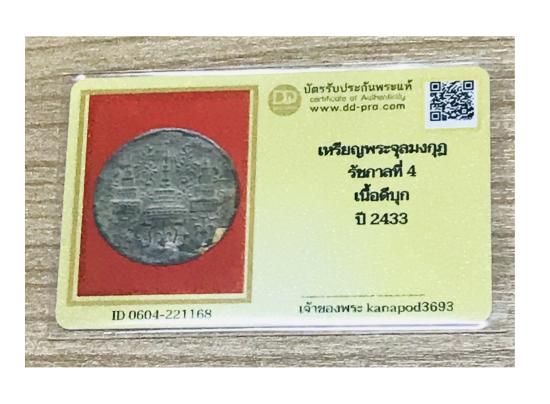 เหรียญพระจุลมงกุฏ - พระแสงจักร รัชกาลที่ 4 หลวงพ่อเนียม วัดน้อย จ.สุพรรณบุรี เนื้อดีบุก ปี 2433 พร้อมบัตรรับรอง
