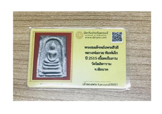 พระสมเด็จหลังพระสิวลี หลวงพ่อกวย วัดโฆสิตาราม จ.ชัยนาท ปี ๒๕๑๕ พิมพ์เล็ก เนื้อผงใบลาน พร้อมบัตรรับรอง