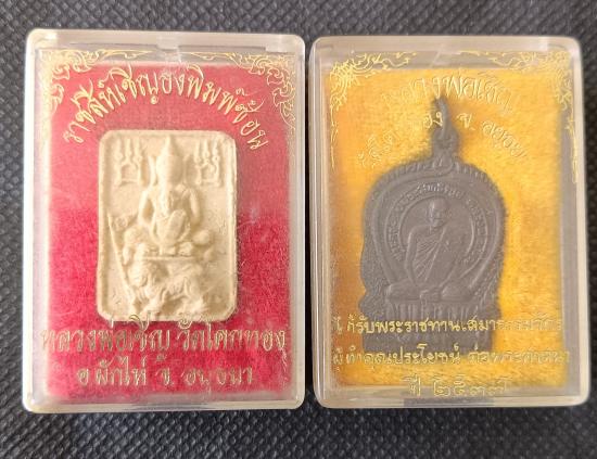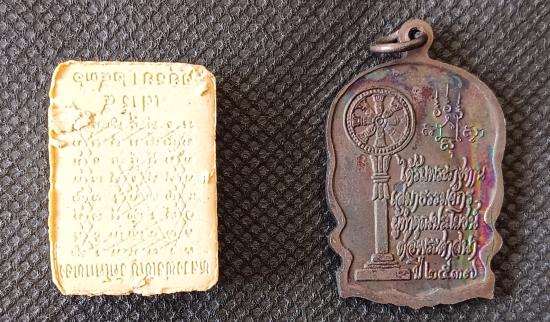ผ้ายันต์แดง พิธีเป่ายันต์เกราะเพชร หลวงพ่อเชิญ วัดโคกทอง พร้อมเหรียญนั่งพานและพระผงราชสีห์เชิญธงหลังยันต์กลับ (เคาะเดียวครับ)