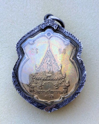 เหรียญ หน้าบรรณ วัดธรรมาภิรตาราม (วัดสะพานสูง) บางซื่อ กทม. ปี 2513 พิธีใหญ่ สภาพสวย (( มาพร้อมเลี่ยมเงินยกซุ้มกันน้ำอย่างดี ))