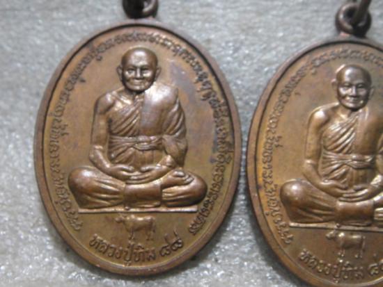วัดใจเคาะเดียว.......100.......เหรียญมีห่วง นั่งวัว หลวงปู่ทิม วัดพระขาว จ.อยุธยา อายุ 88 ปี งานฝังลูกนิมิต ปี 2544 สวย รวม 2 เหรียญ