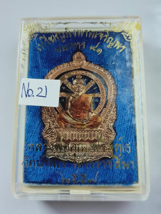เหรียญนั่งพานเจริญพร "ชนะมาร91" หลวงพ่อคูณ วัดบ้านไร่ ปี 57 เนื้อนวะโลหะลงยา เบอร์ 21 พร้อมกล่องครับ (สร้างน้อย เพียง50องค์เท่านั้น)