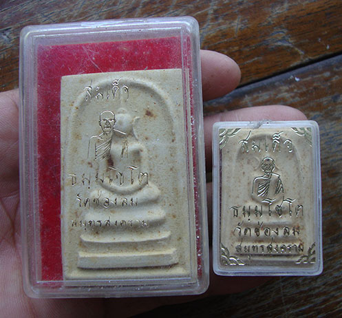 พระสมเด็จ พิมพ์จัมโบ้+พิมพ์ใหญ่ ( วัดช่องลม จ.สมุทรสงคราม ( 2 องค์ ) กล่าองเดิม สวยครับ
