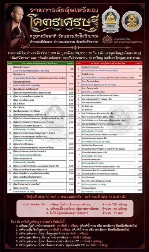 ครูบาอริยชาติ อริยจิตฺโต วัดแสงแก้วโพธฺญาณ รุ่นโคตรเศรษฐี รายการลุ้นเนื้อ1กล่อง50เหรียญ ลุ้น2พิมพ์