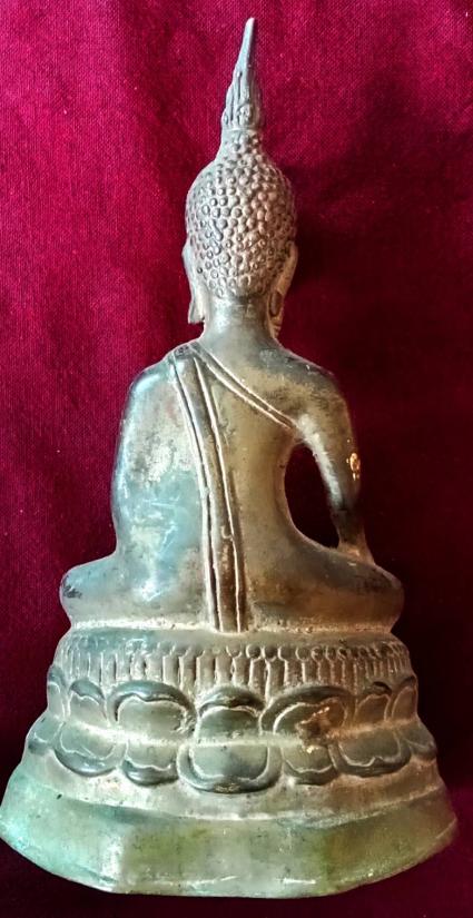 พระบูชา ปางมารวิชัย ขนาดหน้าตักประมาณ 3.5 นิ้ว ประทับนั่งบนฐานบัวคว่ำบัวหงาย เนื้อทองเหลืองเก่าคร่ำ ผิวหิ้ง ใต้ฐานอุดดินไทยวรรณสองสี สภาพเก่าหลายสิบปีสวยตามรูป ส่งฟรีทั่วไทย รับประกันตามกฎครับ