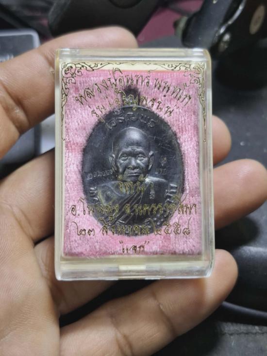 เหรียญหลวงปู่อินทร์ นันทโก รุ่น เจริญพรบน วัดบัว อ.โนนสูง จ.นครราชสีมา ปี 2558 เนื้อทองแดง รมดำ No.2379