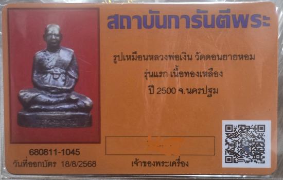 หลวงพ่อเงิน วัดดอนยายหอม พ.ศ.2500 รุ่นแรก พร้อมบัตรรับรอง