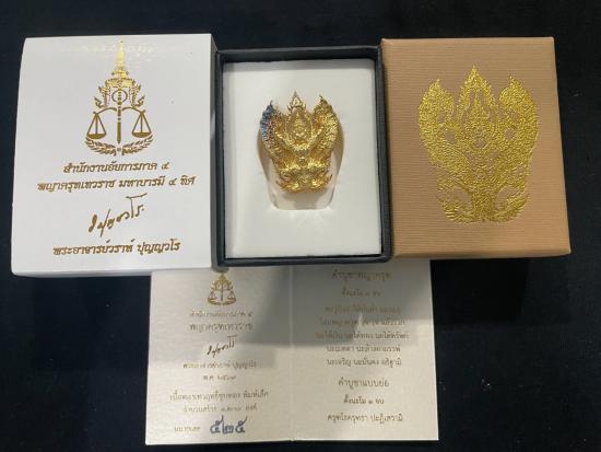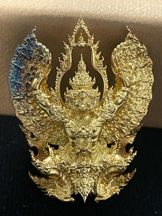 พญาครุฑเทวราช ปี 2563 เนื้อทองเทวฤทธิ์ชุบทอง พิมพ์เล็ก หมายเลข 525 อาจารย์วราห์ พร้อมกล่องอุปกรณ์ครบ