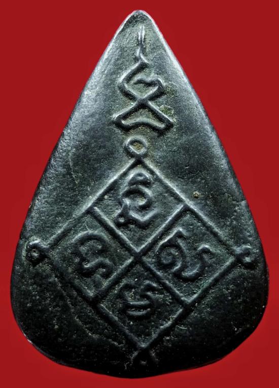 ๗.พระพิมพ์บัวเม็ด หลังยันต์ นะ มะ พะ ทะ แล้วมีเฑาะว์ขึ้นยอดอยู่ตรงปลาย