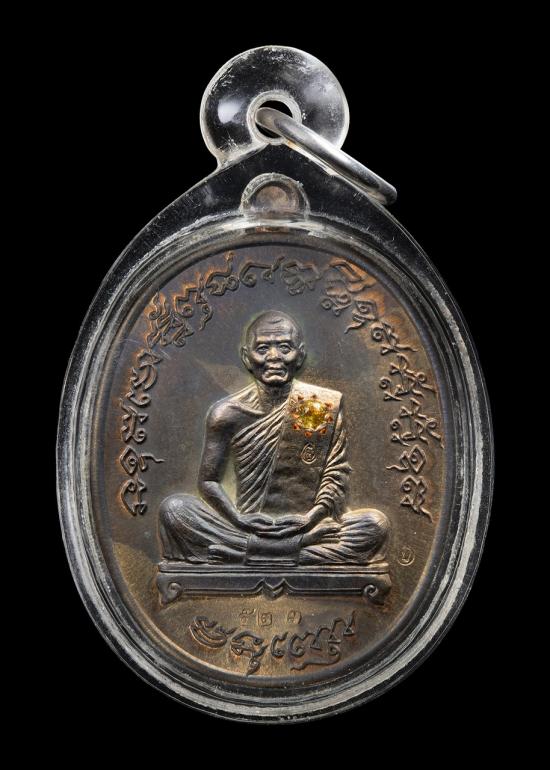 เหรียญเจริญพร ไตรมาส ปี55(ฟ้าผ่า) หลวงพ่อสาคร วัดหนองกรับ เนื้อนวะ ฝังบุษราคัม หลังเรียบ เลข 523 เคาะเดียว