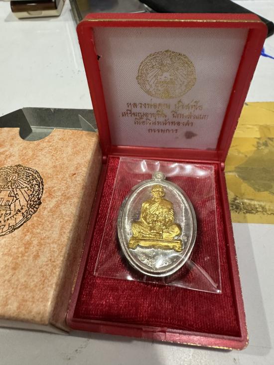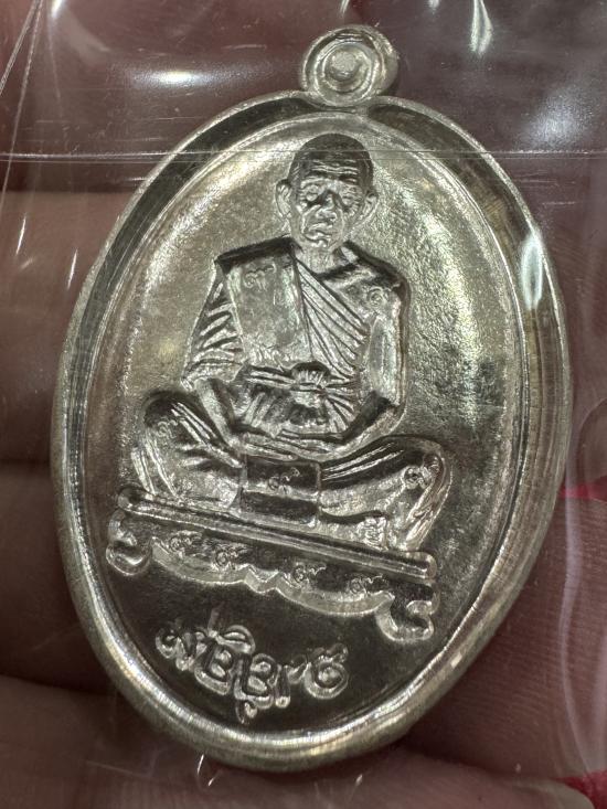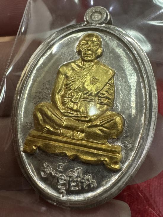 (เลขสวย 4)เหรียญอายุยืน รุ่นพิเศษ ปี2553 เนื้อเงิน ไม่ตัดปีก หลังแบบ หน้ากากทองคำ no.4 มีกล่องครบ