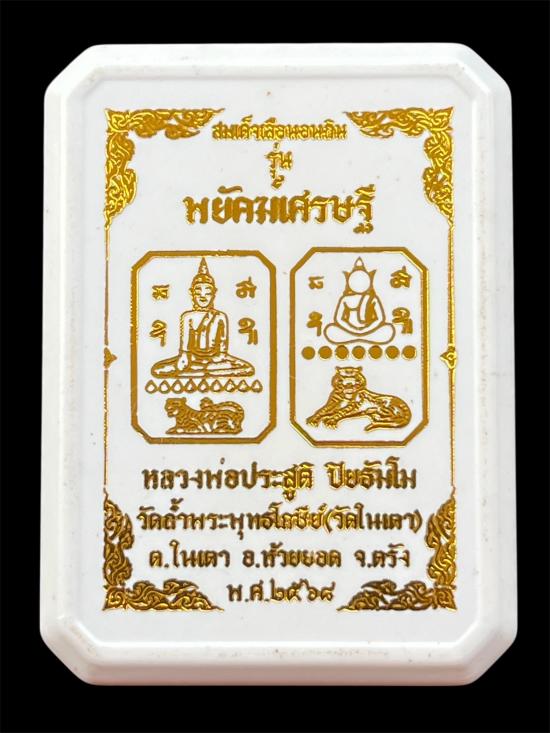 สมเด็จเสือนอนกิน รุ่น "พยัคฆ์เศรษฐี" หลวงพ่อประสูติ ปิยธัมโม วัดถ้ำพระพุทธโกษีย์ (ในเตา) จ.ตรัง เนื้อดินเผาอุดมวลสารวัดในเตา No.89 พร้อมกล่องเดิมครับ