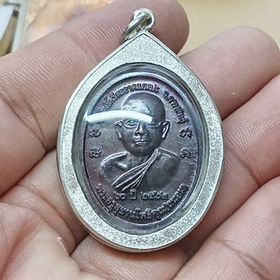 เหรียญหลวงปู่ศิลา วัดโพธิ์ศรีสะอาด พิมพ์มียันต์ เนื้อทองแดง ปี 2562 จ.กาฬสินธุ์ กล่องเดิม พร้อมบัตรและเลี่ยมกรอบมือหนึ่งเงินแท้ งาน 92.5% ขึ้น กรอบหนา เดินทรายตัดขัดเงา classic..