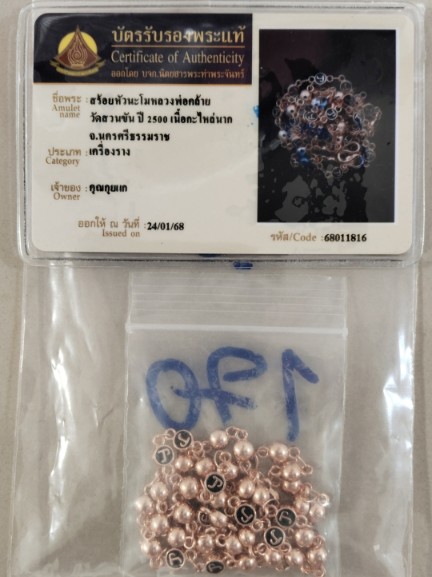 วัดใจ สร้อยหัวนโม หลวงพ่อคล้าย วัดสวนขัน ปี2500 เนื้อกะไหล่นาก