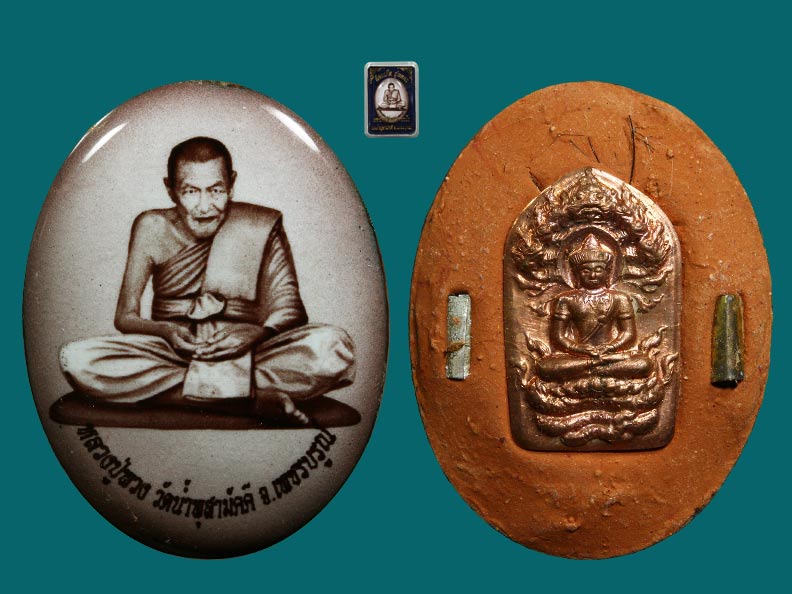 ล็อคเก็ตรุ่นแรก ฉากซีเปีย "หลวงปู่พวง" วัดน้ำพุสามัคคี สภาพสวยไม่ผ่านการใช้ พร้อมกล่องเดิม