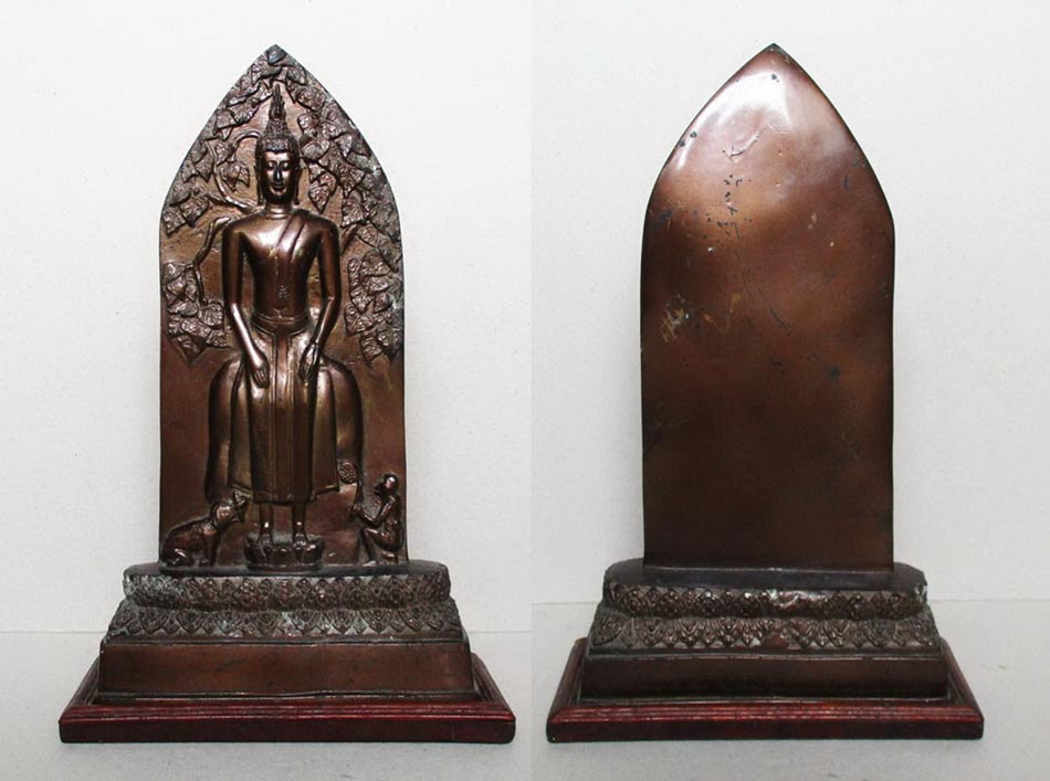 แผ่นพระบูชา หล่อหลวงพ่อโต วัดเสาธงหิน จ.นนทบุรี ที่ระลึกงานผูกพัทธสีมาฝังลูกนิมิต พ.ศ.2534 สูงรวมฐาน 13 นิ้ว เนื้อโลหะรมน้ำตาลมันปุ ผิวหิ้ง !!