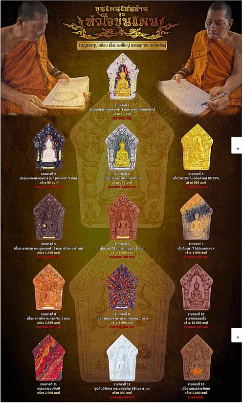รายการจองที่ 2...ขุนแผนแสนล้าน รุ่น"หัวใจขุนแผน" หลวงปู่มหาศิลา สิริจันโท รายการจองที่ 2 "นำฤกษ์" เนื้อผงพรายกุมาร ฝังตระกรุดทองคำแท้ 3 ดอก กล่องนี้ซีลเดิม ลุ้นหน้ากากทองคำแท้ 3 องค์(สร้าง 99 องค์) |