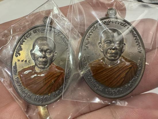 เหรียญไพรีพินาศ ปี2557 เนื้อชนวน ลงยาจีวร ไม่มีกล่อง จำนวน 2 เหรียญ
