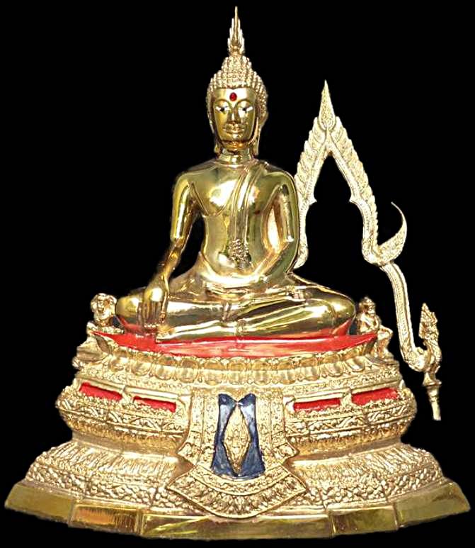 พระพุทธชินราช จ. พิษณุโลก ซุ้มถอดได้ ฐานหน้าอกเลาเนื้อทองเหลืองขัดมัน หน้าตัก 5 นิ้ว ขนาดความสูงรวมซุ้ม 12 นิ้ว |