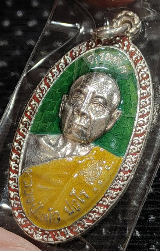 | เหรียญใบขี้เหล็ก รุ่น "ส.ธ. ใบขี้เหล็กหลวง" หลวงปู่แผ้ว ปวโร วัดประชาราษฎร์บำรุง(รางหมัน) อ.กำแพงแสน จ.นครปฐม เนื้อเงินลงยาเขียว เลข 1341 กล่องเดิม |