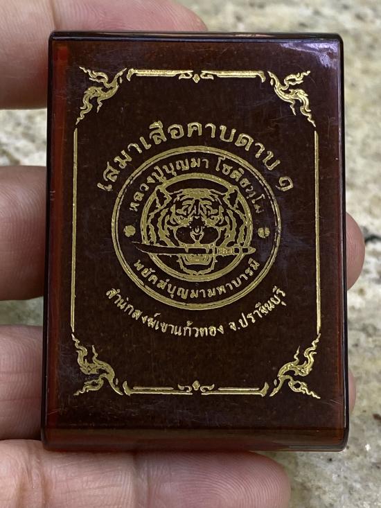 หลวงปู่บุญมา สำนสงฆ์ เขาแก้วทอง รุ่น เสมาเสือคาบดาบ 1 เนื้อแบคโซเดียมสามกษัตริย์เลขโค้ด 269 เลขสวยจมูกสมบูรณ์กล่อง