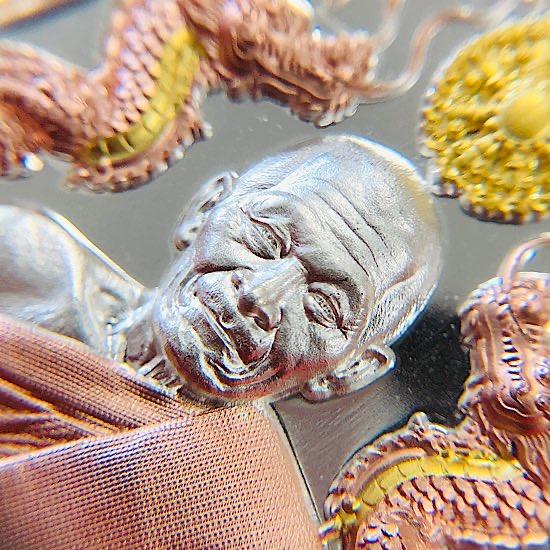 หลวงปู่มหาศิลา อายุวัฒนะมงคล81 มังกรคู่ เนื้อเงิน สามกษัตริย์ จมูก100 เลข117 =9 กล่องเดิม สภาพคัดสวยๆ