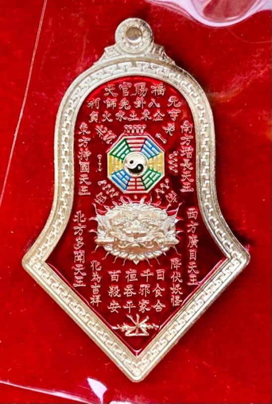 เหรียญกันชง ทรงจำปี หลวงพ่ออิฏฐ์ วัดจุฬามณี จ.สมุทรสงคราม เนื้อเงินพิมพ์ใหญ่ ลงยาสีแดง ซีลเดิมกล่องเดิม