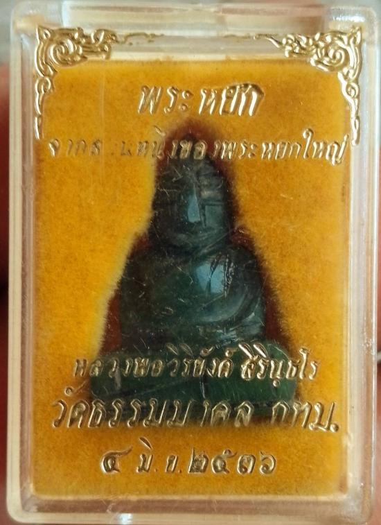 พระหยกแท้ พิมพ์พระพุทธใหญ่ หลวงพ่อวิริยังค์ วัดธรรมมงคล ปี 2536 รุ่นนี้เป็นเนื้อหยกที่สกัดมาจากพระหยกใหญ่พระประธานของวัด พร้อมกล่องเดิม