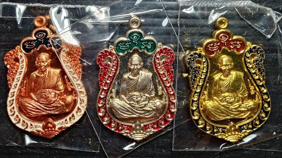 พระชุด 3 เหรียญ เหรียญเสมา 7 รอบ หลวงพ่อหวั่น กุสลจิตโต วัดคลองคูณ จังหวัดพิจิตร กล่องเดิม |