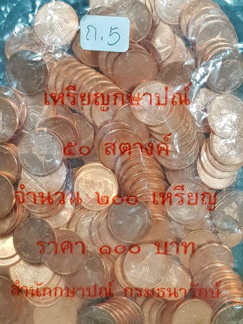 ::เหรียญใหม่ UNC รัชกาลที่9 ปี2559 ถุงซีลเดิม ราคาเหรียญ 50 สตางค์ X 200เหรียญ รวม 100 บาท:: แพ็คที่.ก.5 <<<เหรียญถ่ายจากเหรียญจริงไม่ได้ตกแต่งรูปแต่ประการใด>>> |
