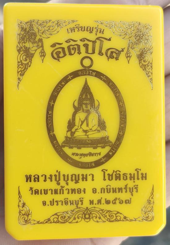 เหรียญพระพุทธชินราช รุ่น"อิติปิโส" หลวงปู่บุญมา โชติธัมโม วัดเขาแก้วทอง จ.ปราจีนบุรี เนื้อชนวนโบราณ องค์พระเพ้นท์ทอง หลังนารายณ์ทรงครุฑ เลี่ยมกรอบพลาสติก หมายเลข ๕๕ พร้อมกล่อง พระสวยมากคับ