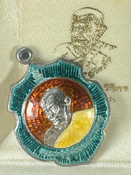 เหรียญอาร์มสรงน้ำ เนื้อเงินลงยา หลวงปู่คร่ำ วัดวังหว้า จ.ระยอง เหรียญนี้ทันหลวงปูแน่นอน ออกตอนหลวงปู่อายุ 97 ปี หลวงปู่มรณะภาพตอนอายุ100 ปี สภาพสวยกล่องเดิม