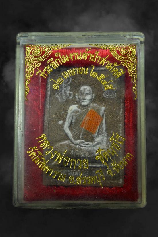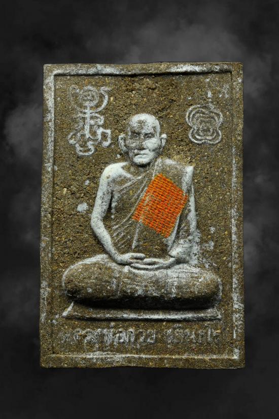 พระผงรูปเหมือนหลวงพ่อกวย วัดโฆสิตาราม หลังแม่ธรณี ปี2545 พร้อมกล่องเดิม (หายากหมุนเวียนน้อยมาก) |