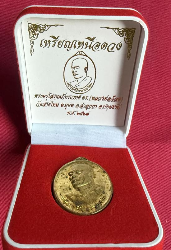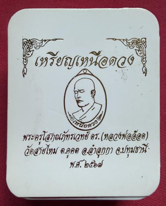 วัดใจไปเลย เหรียญหล่อเหนือดวงหลวงพ่ออ๊อด วัดสายไหม เนื้อปลอกลูกปืนนำฤกษ์ หมายเลข 235 |