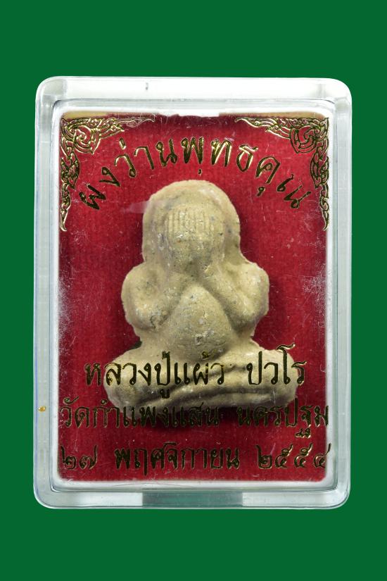 วัดใจ พระปิดตาพิมพ์ตุ๊กตา เนื้อผงว่านพุทธคุณ หลวงปู่แผ้ว วัดกำแพงแสน จ.นครปฐม ปี 2554 สภาพสวย พร้อมกล่องเดิม |