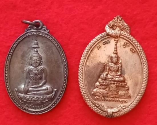 เคาะเดียว 2 เหรียญ เหรียญพระแก้วบุษราคัม วัดศรีอุบลรัตนาราม เนื้อทองแดงรมดำ พิธีใหญ่ ปี2519 และเหรียญพระศรีอาริยเมตไตรย์ หลังหลวงปู่ดู่หลวงตาม้า เนื้อทองแดง มีรอยจารหลวงตาม้า |