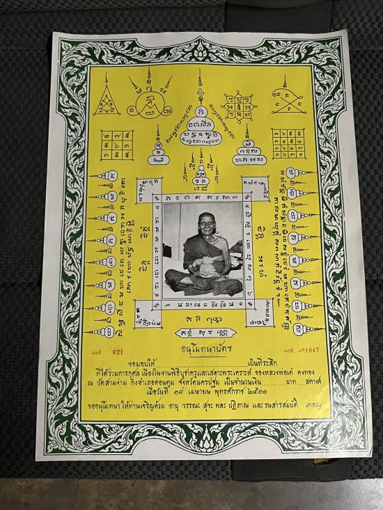 ภาพใบอนุโมธนาบัตร หลวงพ่อเต๋ คงทอง วัดสามง่าม ปี2511 สวยเดิมสมบูรณ์ เก่าเก็บ ทันหลวงพ่อปลุกเสกครับ ใบใหญ่