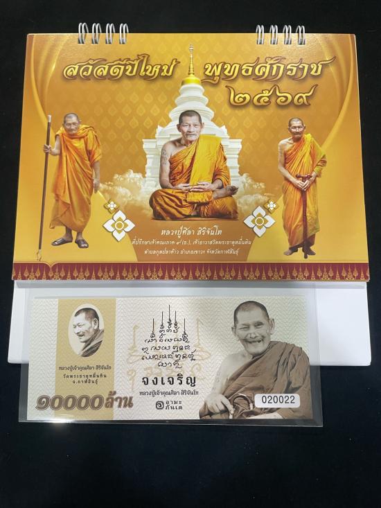 !!!เคาะเดียวได้ 2 รายการ !!ปฎิทินตั้งโต๊ะพร้อมธนบัตร 10000 ล้าน หมายเลข 020022 หลวงปู่ศิลา สิริจันโท |