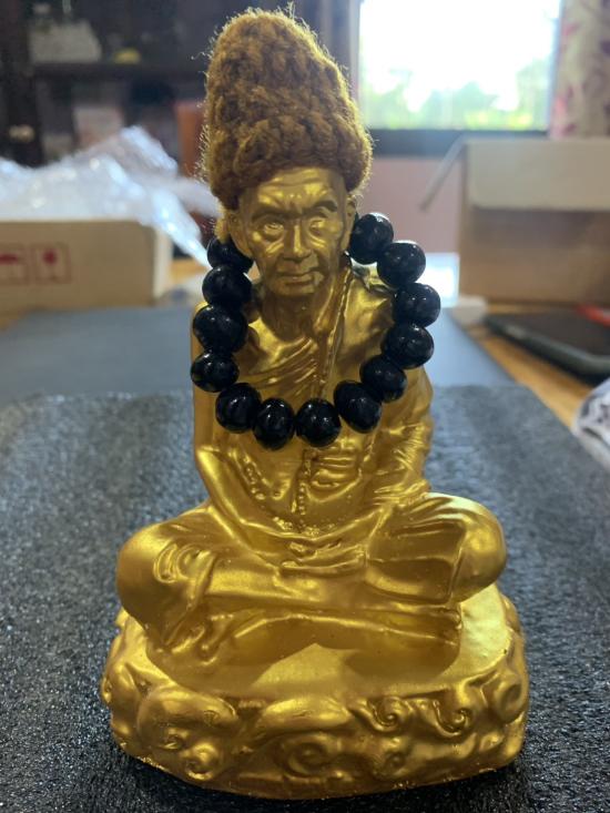 พระบูชาหลวงปู่หมุน ฐิตสีโล วัดบ้านจาน เนื้อแร่เหล็กน้ำพี้ผสมเรชิ่นปัดทอง ขนาด 3 นิ้ว ((ไต้ฐานอุดพระผงดวงรวยชนะจน ออกวัดบ้านจาน))