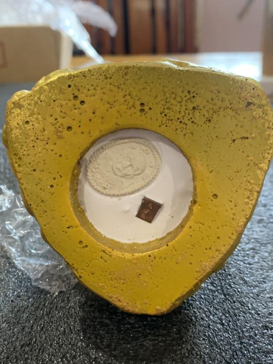 พระบูชา หลวงปู่หมุน วัดบ้านจาน ศรีสะเกษ ปี65 ฐานสามเหลี่ยม (งานวัดจัดสร้างเองในนามวัดบ้านจาน) เนื้อแร่เหล็กน้ำพี้ผสมมวลสารเก่าผสมเรซิ่นปัดทอง ฐาน 3 นิ้ว สูง 4 นิ้ว ไต้ฐานอุดพระผงดวงรวยชนะจน เลข 428