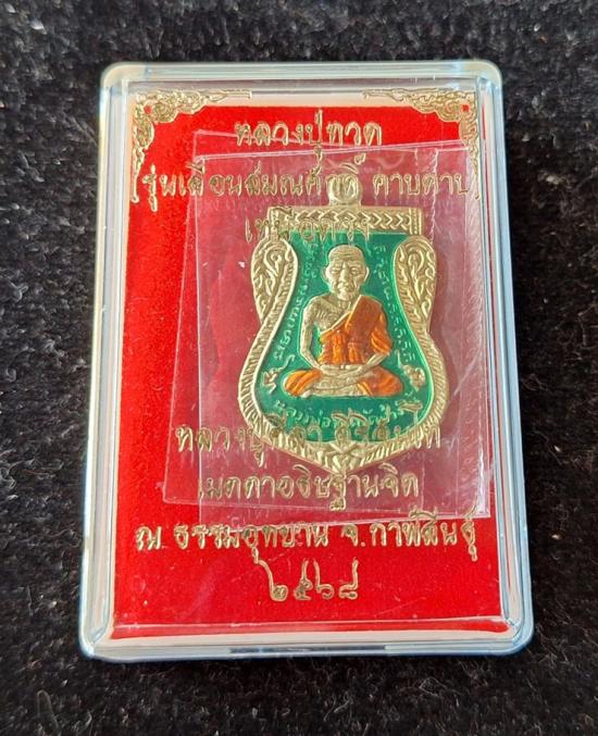 วัดใจ หลวงปู่ทวด หลวงปู่ศิลา เมตตาอธิษฐานจิต รุ่นเลื่อนสมณศักดิ์ เหนือดวง เนื้อทองทิพย์ ลงยา No.39 |