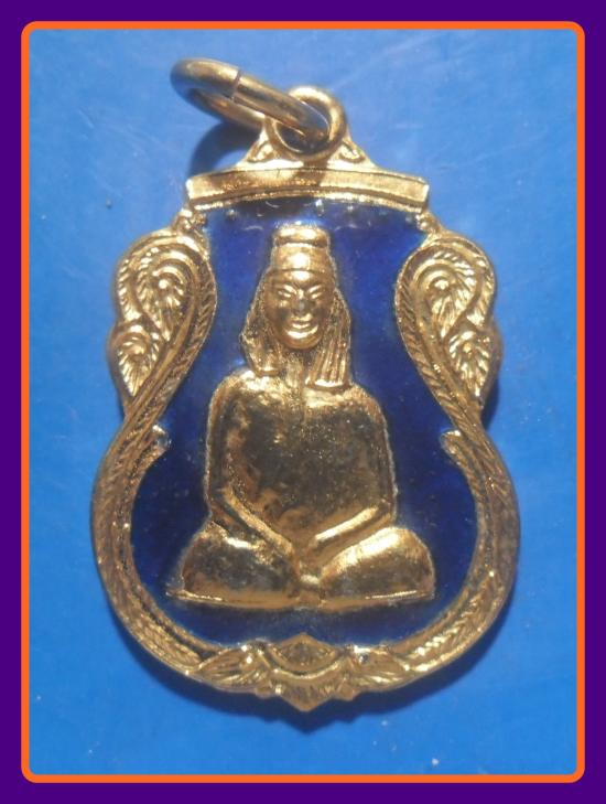 พิมพ์เล็ก สวย-100-เหรียญเสมา เจ้าพ่อเขาใหญ่ เกาะสีชัง จ.ชลบุรี เนื้อกะไหล่ทองลงยาสีน้ำเงิน |