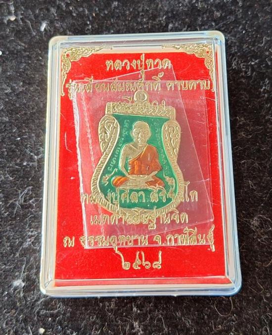 วัดใจ หลวงปู่ทวด หลวงปู่ศิลา เมตตาอธิษฐานจิต รุ่นเลื่อนสมณศักดิ์ เหนือดวง เนื้อทองทิพย์ ลงยา No.90 |
