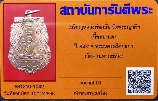 เหรียญหลวงพ่อกลั่น วัดพระญาติฯ เนื้อทองแดง ปี 2507 จ.พระนครศีอยุธยา วัดคานหามสร้าง