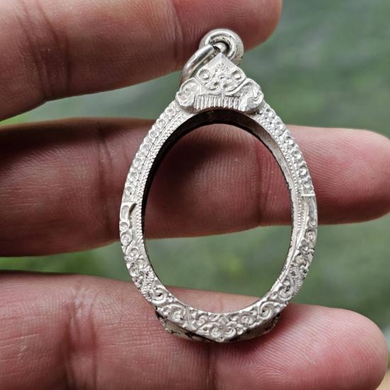 ตลับเงิน รูปไข่อย่างดี ยิง%เรียบร้อย 94.40% งานมือ ขนาด (2.30X3.00)Cm หรือเหรียญขนาดใกล้เคียง สวยเดิม เคยใส่พระเหรียญตามรูป ผมแกะมาล้างทำความสะอาดเบื้องต้นให้กำลังกลับดำครับ เงินแท้%สูงตามเอกสารครับ